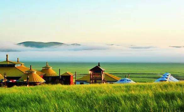 每逢盛夏,草原上鸟语花香、空气清新,星星点点的蒙古包上升起缕缕炊烟,徽风吹来,牧草飘动,处处“风吹草低见牛羊”。